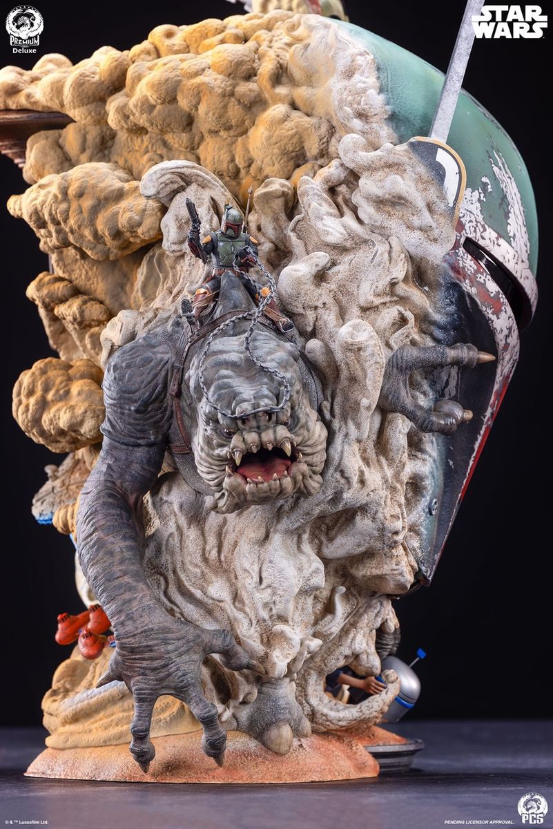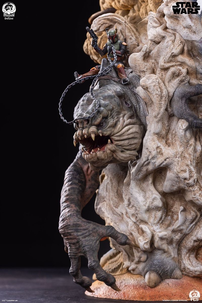 Deluxe Edition ayrıca, isteğe bağlı bir ekleme olan, yaşlı bir Boba Fett'in korkunç Rancor canavarının üzerinde yolculuk ettiğini gösteren, değiştirilebilir bir heykel parçası da içeriyor.