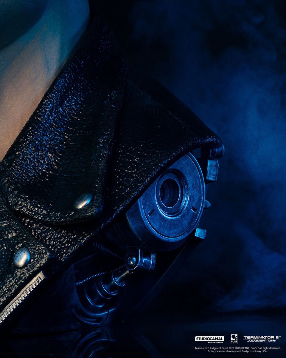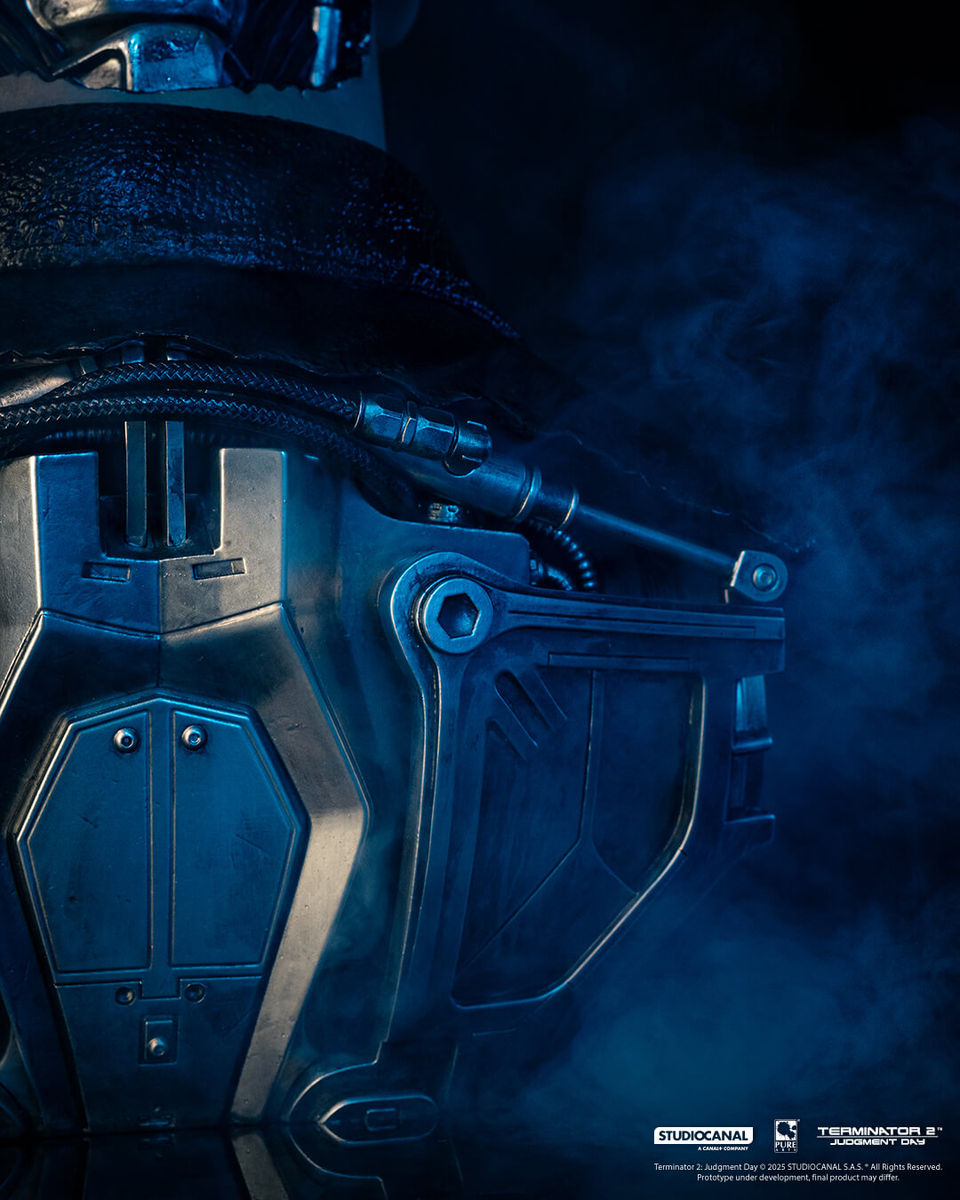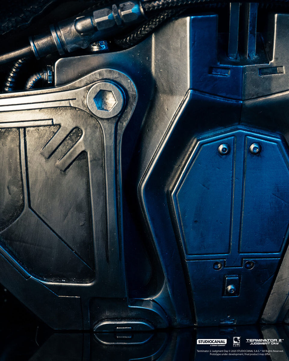 Cyberdyne Systems Model 101 T-800. John Conner liderliğindeki insan direnişine uyum sağlamak ve sızmak için özel olarak tasarlanmış, hiperalaşımlı bir endoskeleton üzerinde canlı dokuya sahip sibernetik bir organizma. Arnold Schwarzenegger tarafından canlandırılan PureArts, T-800'ü son derece detaylı bir heykel benzeri, metal kaplamalar ve derinin altındaki karmaşık detaylı endoskeletonu ortaya çıkaran çıkarılabilir bir ön plaka ile hayata geçiriyor.