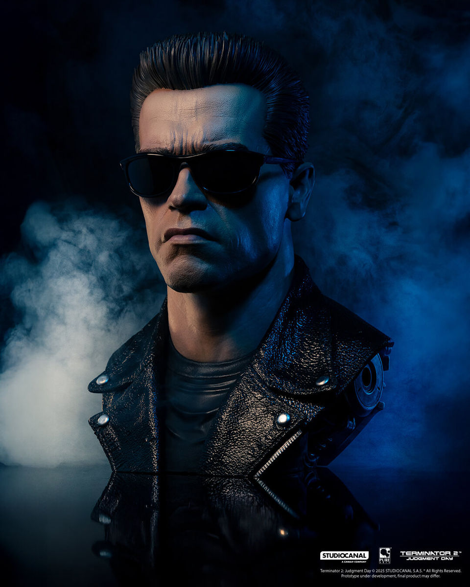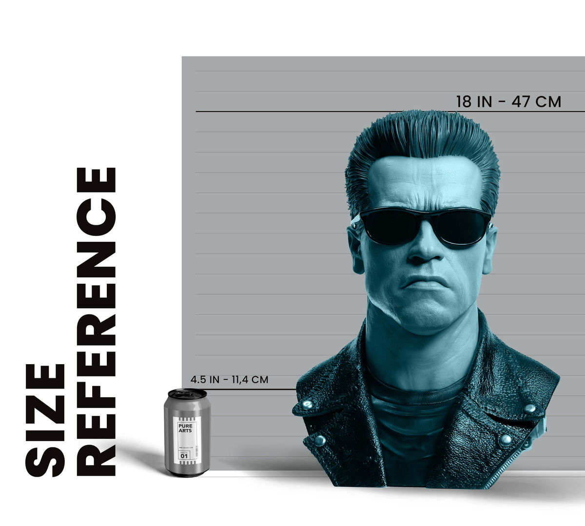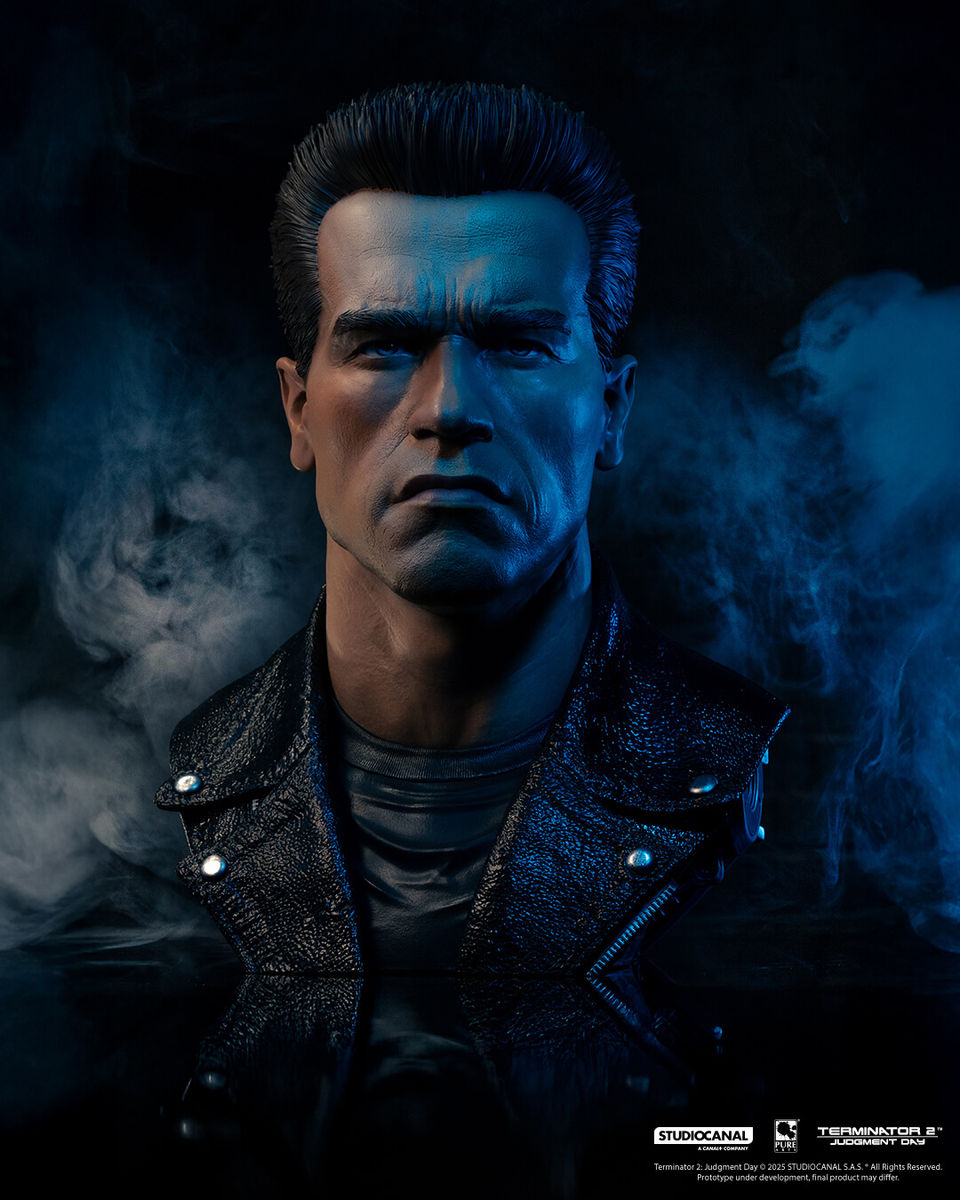 Cyberdyne Systems Model 101 T-800. John Conner liderliğindeki insan direnişine uyum sağlamak ve sızmak için özel olarak tasarlanmış, hiperalaşımlı bir endoskeleton üzerinde canlı dokuya sahip sibernetik bir organizma. Arnold Schwarzenegger tarafından canlandırılan PureArts, T-800'ü son derece detaylı bir heykel benzeri, metal kaplamalar ve derinin altındaki karmaşık detaylı endoskeletonu ortaya çıkaran çıkarılabilir bir ön plaka ile hayata geçiriyor.