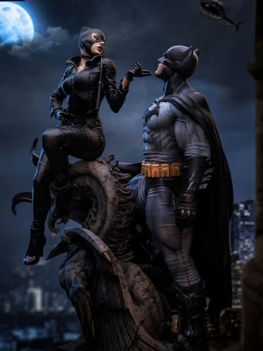 Yarasa ve Kedi, Iron Studios'un bu yeni 1/6 ölçekli sınırlı sayıdaki heykelinde Gotham'ın tepesinde buluşuyor!