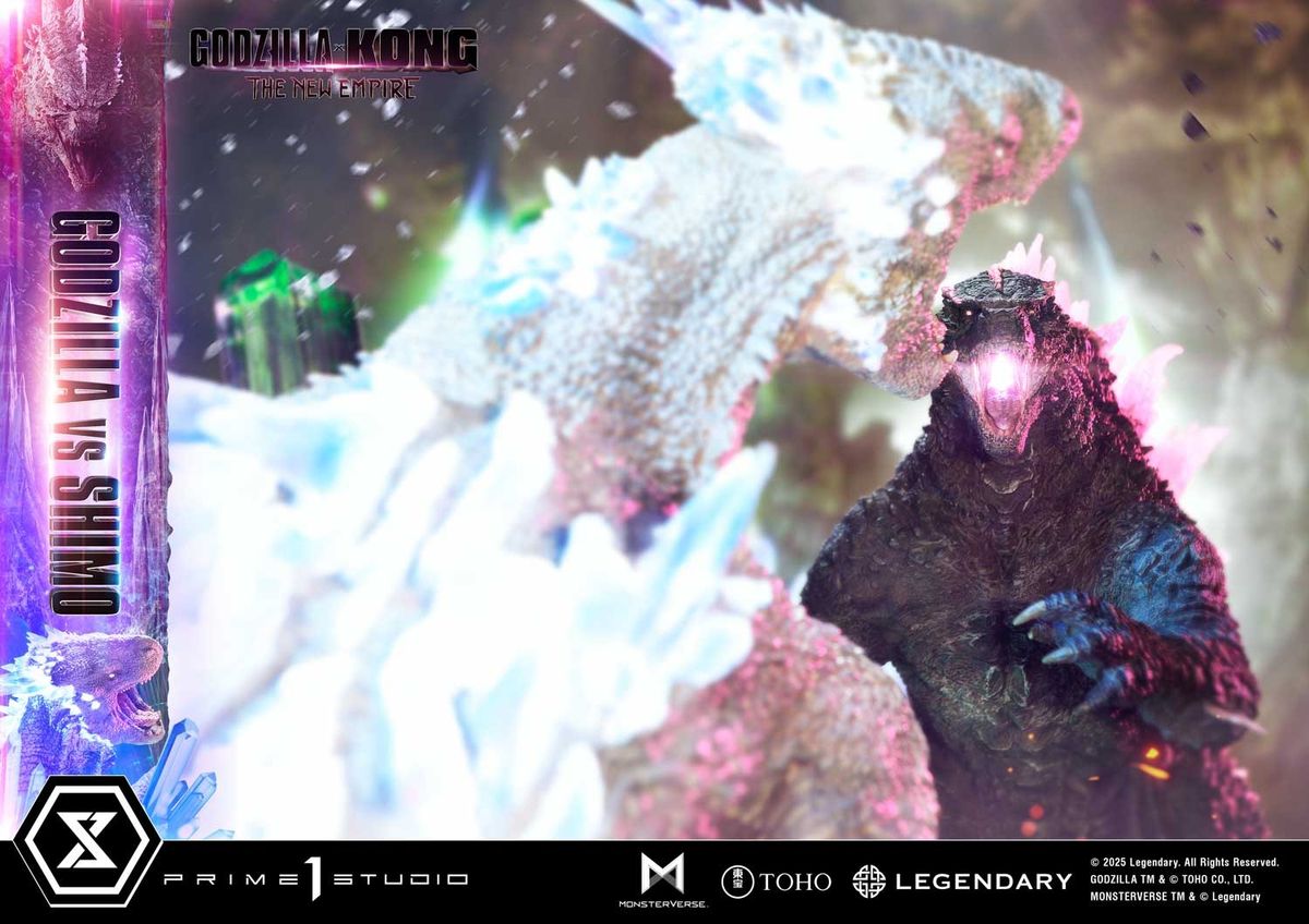 Kralların destanında yeni bir bölümü işaretleyen ve hem Godzilla'nın 70. yıl dönümünü hem de Monsterverse'in 10. yıl dönümünü anan destansı "Godzilla x Kong: The New Empire" filminden, Godzilla ve Shimo arasındaki savaşı konu alan yepyeni bir Ultimate Diorama Masterline heykeli geliyor.