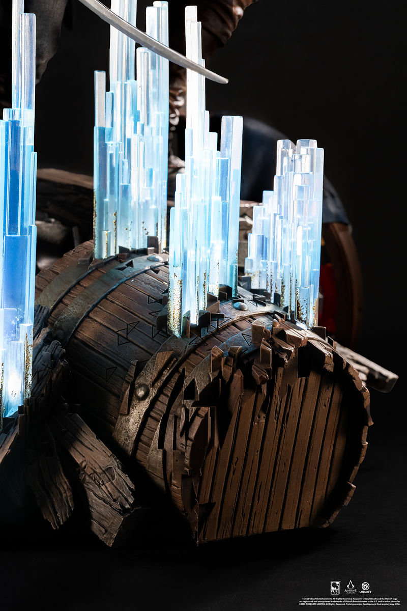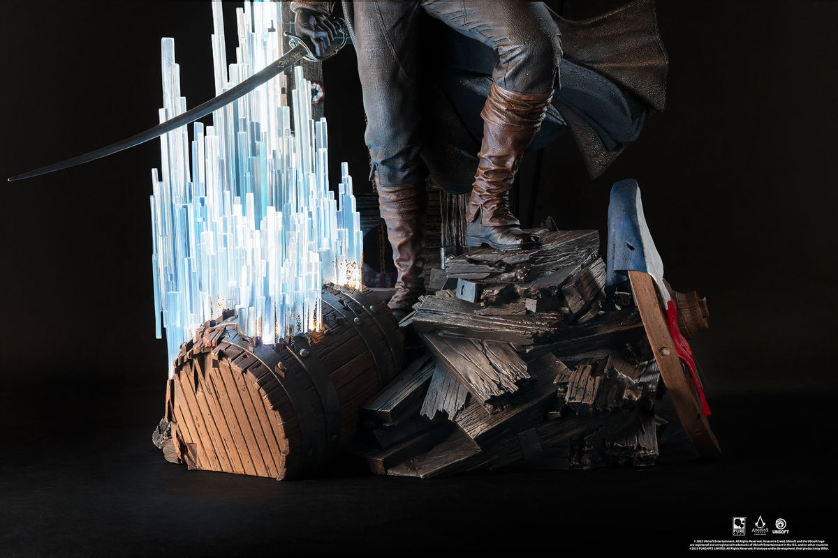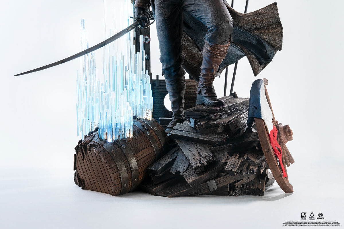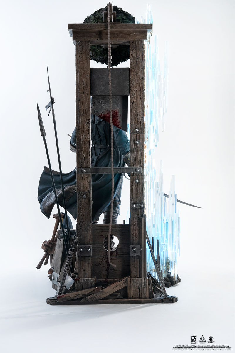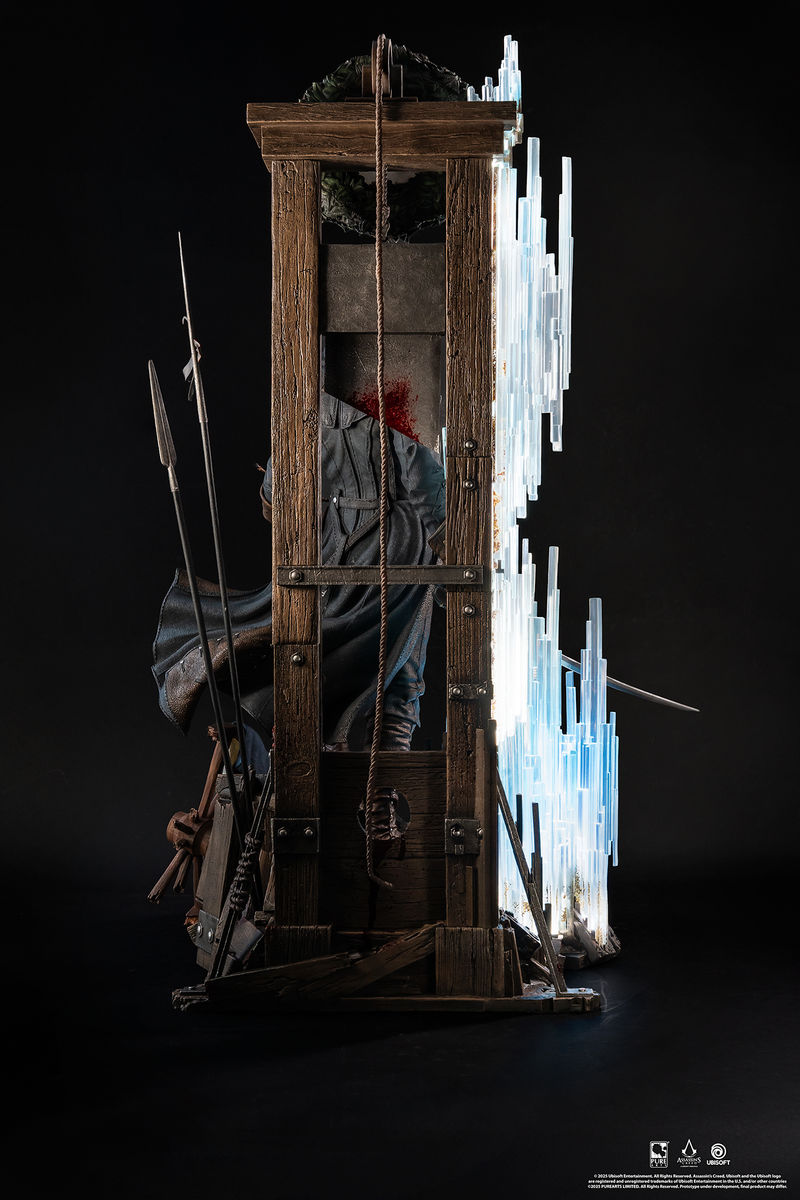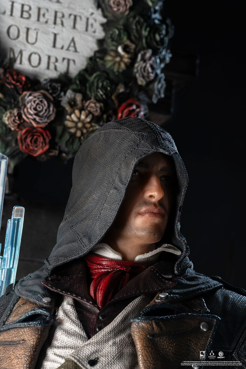 Assassin's Creed Unity'nin baş kahramanı Usta Suikastçı Arno Dorian ile birlikte Fransız Devrimi'nin kalbine adım atın. Arno, bir elinde kılıcı, diğer elinde hayalet bıçaklı tatar yayı ile ayaklanmanın enkazının ve kalıntılarının üzerinde duruyor. Arno'nun arkasında, üzerinde meydan okuyan "Özgürlük ya da ölüm" yazısı bulunan bir çiçek çelengiyle taçlandırılmış, yıpranmış bir giyotin yükseliyor. Ayaklarının dibindeki yıkıntıların arasında, Devrim'in kaosunu yansıtan yırtık bir Fransız bayrağı uzanıyor. PureArts'ın imzası olan LED aydınlatmalı Animus efekti sağ tarafından belirerek çalkantılı sahneyi aydınlatıyor.