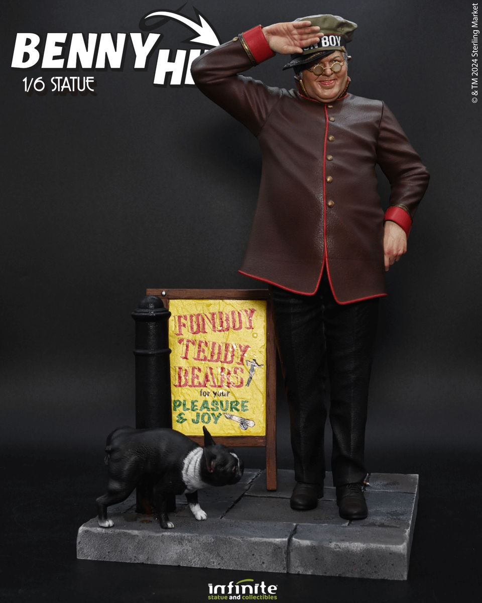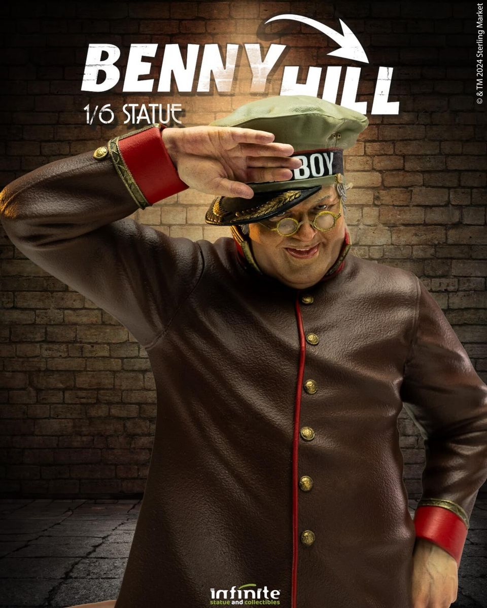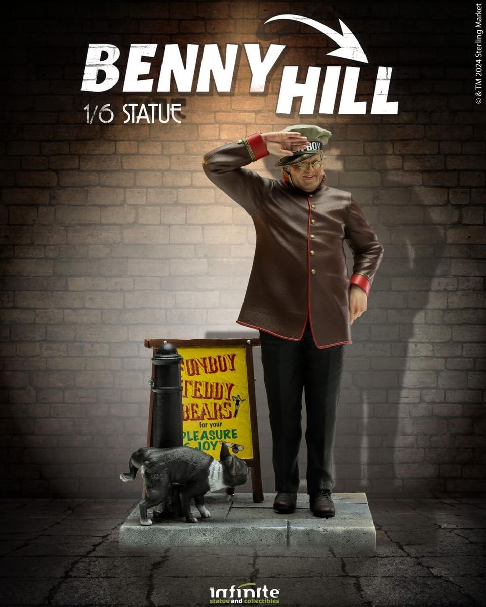 Infinite Statue & Collectibles, efsanevi Fred Scuttle olarak Benny Hill'in 1/6 ölçekli muhteşem bir heykelini gururla sunar. 1972 tarihli bir eskizden esinlenen bu heykel, kahkahanın en büyük ustalarından birinin belirgin komedi özünü yakalar. Tüm komedi ve koleksiyon meraklıları için olmazsa olmaz bir övgüdür.