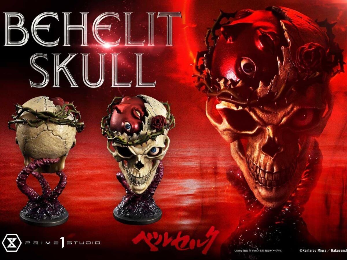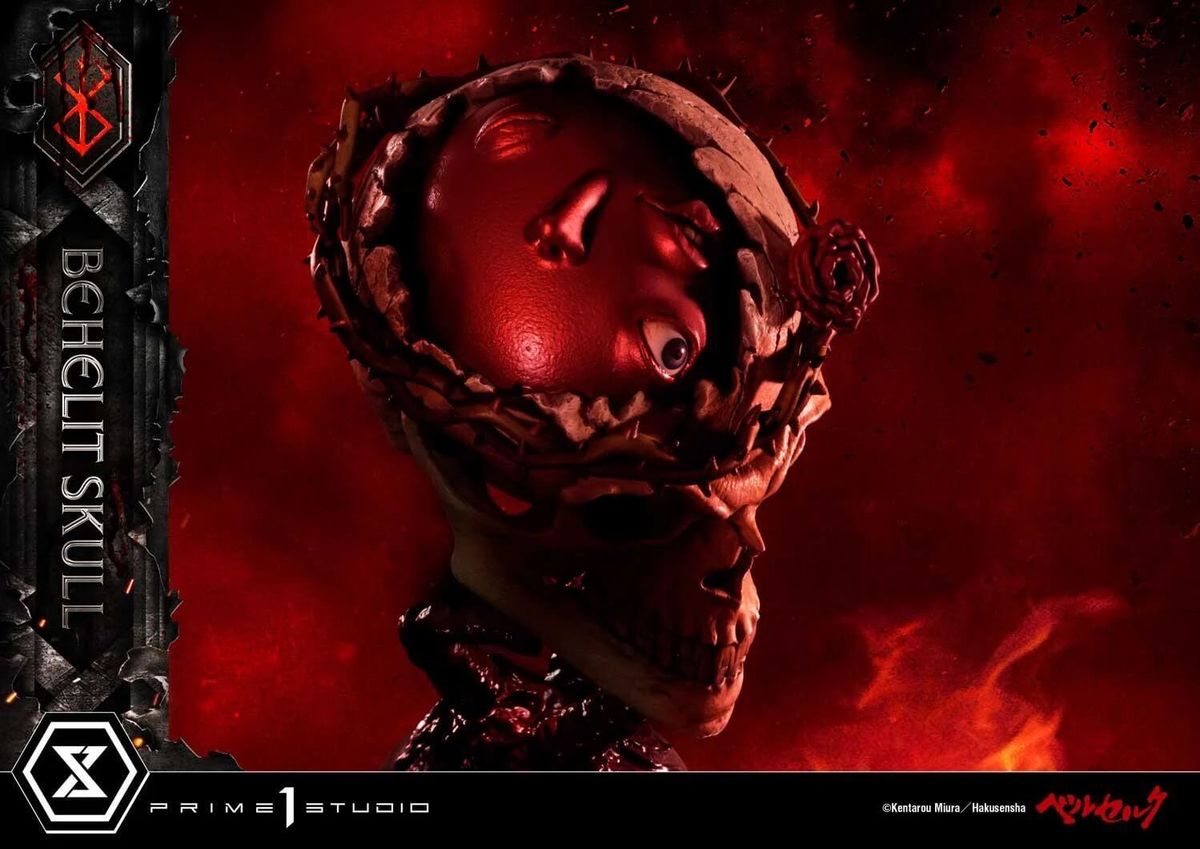 Prime 1 Studio sanatçıları, merhum Sensei Miura'ya duydukları saygıyla, Berserk serisinin diğer muhteşem heykellerine layık bir eser üretmek için zaman ve özen gösterdiler. Manga'dan doğrudan alınan, yaklaşık 20 cm yüksekliğindeki Behelit Kafatası, balçık dokunaçları tarafından havada tutuluyor, dikenli bir taçla çevrili ve kafatası boşluğunda Kızıl Behelit'i barındırıyor. Sensei Miura'nın çeşitli temalarının mükemmel bir temsili ve birleşimidir. Minimalist, metalik taban göze batmayan bir tasarıma sahip ve Berserk temasıyla uyumlu.