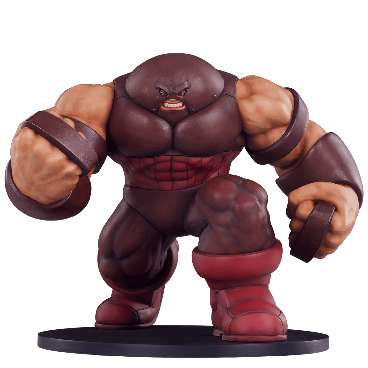 Juggernaut heykeli, büyük kaslarını ve klasik kostüm detaylarını vurgulamak için ekstra özen gösterilerek klasik kahverengi ve bordo görünümüne boyanmıştır.