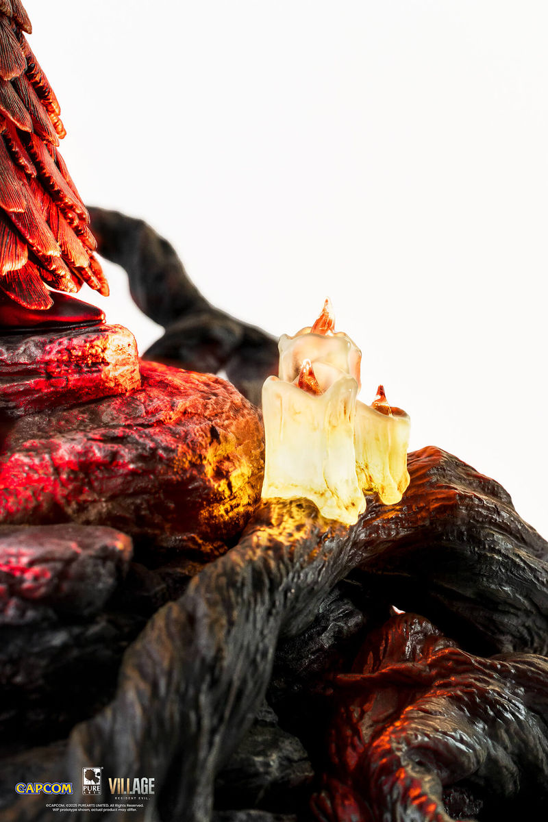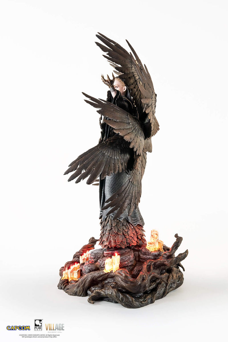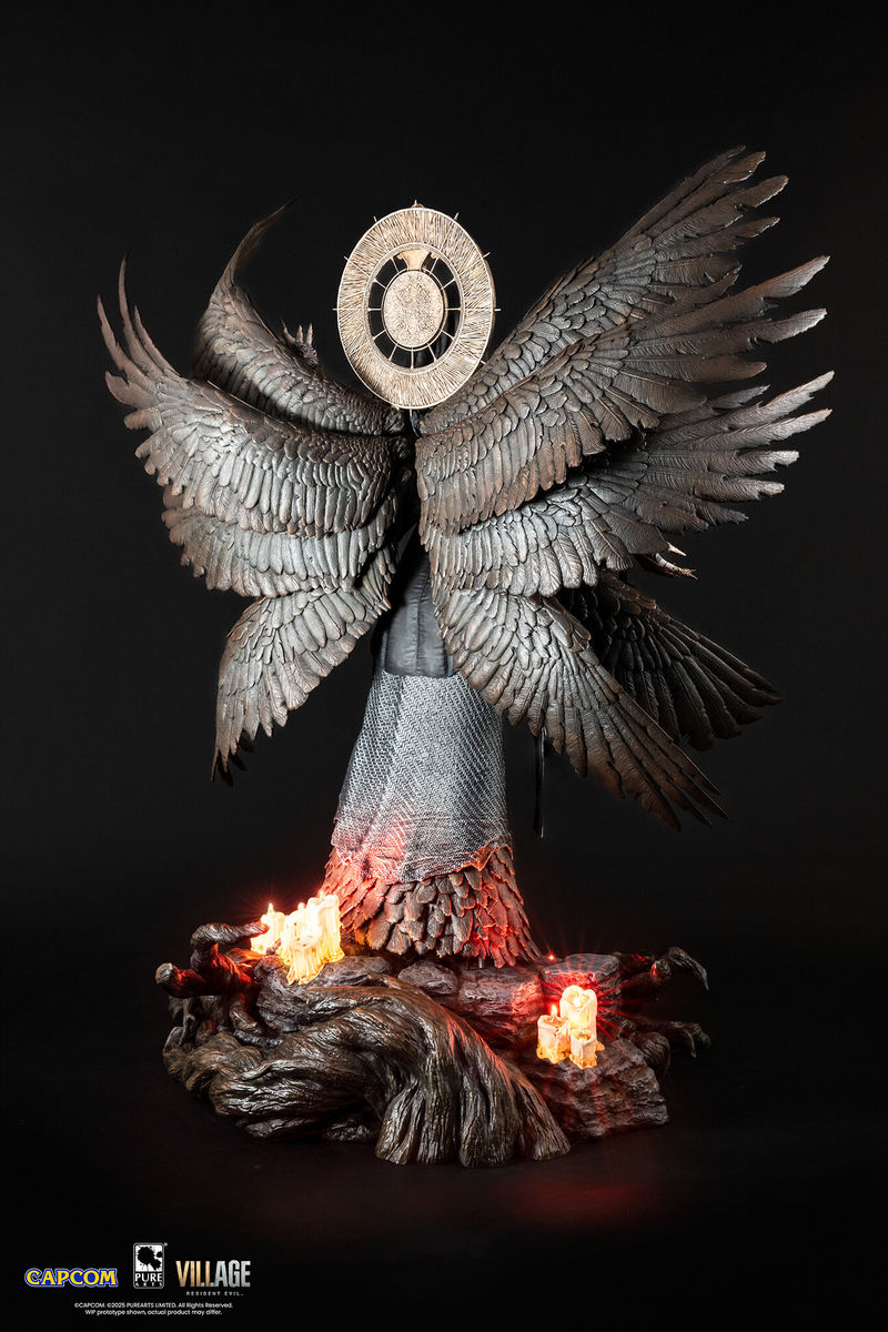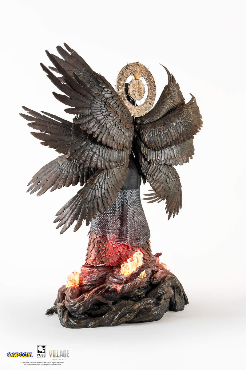 Resident Evil Village'ın tarikat lideri, biyoloğu ve insanüstü kötü adamı inanılmaz derecede yüksek ayrıntılarla yakalanmış! Altı görkemli kanadı da açılmış ve altın halesi ve ustaca şekillendirilmiş elbisesi ilahilik yayıyor. Kendisini enfekte eden The Mold'dan gelen dokunaçlarla tamamlanmış ayrıntılı bir taş zemin tabanının üzerinde zarifçe duran Mother Miranda, altın maskesiyle veya maskesiz olarak sergilenebilir. Ayaklarının dibinde LED ışıklı mumlar titreşiyor ve yaydığı uğursuz auraya katkıda bulunuyor.
