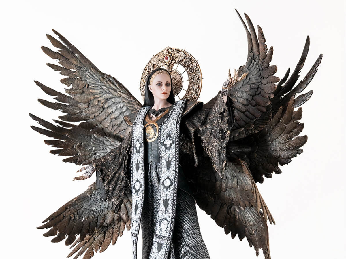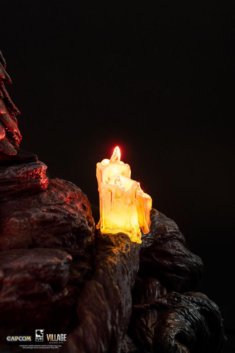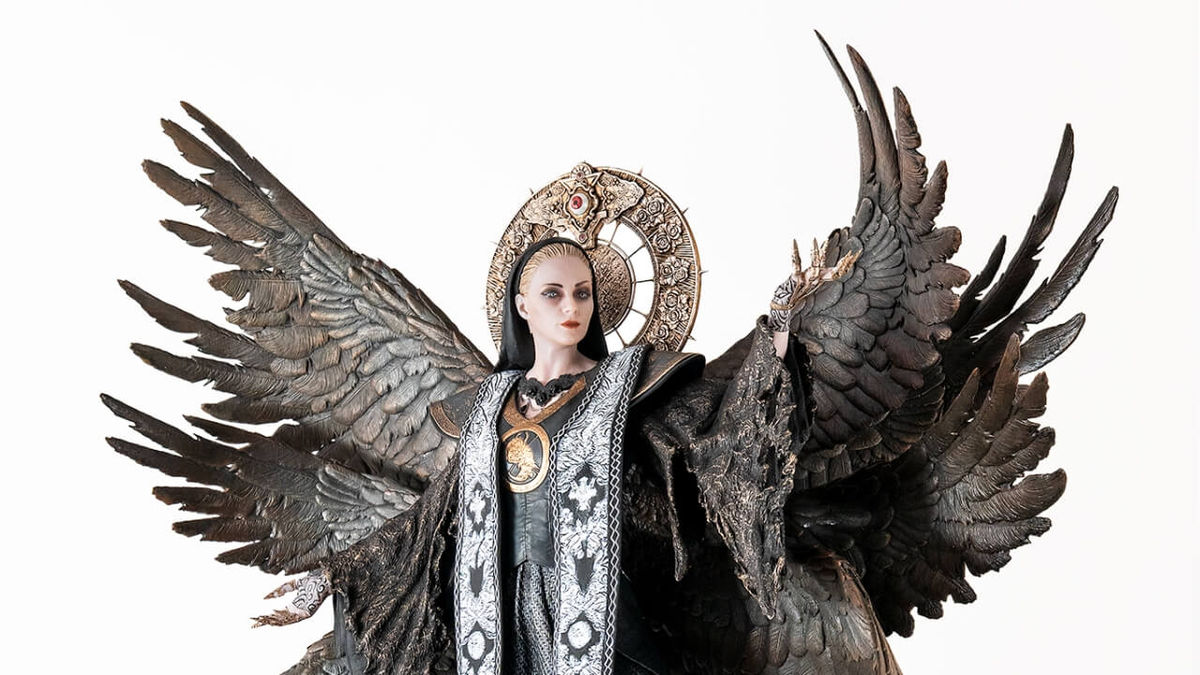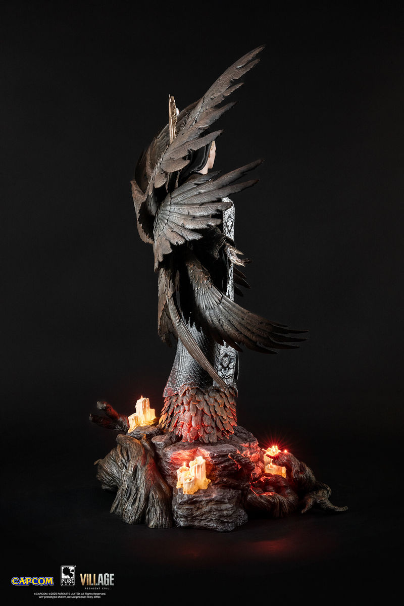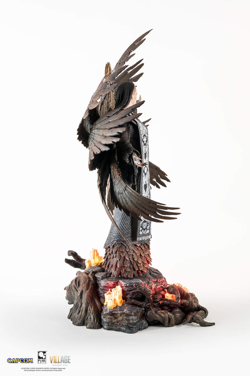 Resident Evil Village'ın tarikat lideri, biyoloğu ve insanüstü kötü adamı inanılmaz derecede yüksek ayrıntılarla yakalanmış! Altı görkemli kanadı da açılmış ve altın halesi ve ustaca şekillendirilmiş elbisesi ilahilik yayıyor. Kendisini enfekte eden The Mold'dan gelen dokunaçlarla tamamlanmış ayrıntılı bir taş zemin tabanının üzerinde zarifçe duran Mother Miranda, altın maskesiyle veya maskesiz olarak sergilenebilir. Ayaklarının dibinde LED ışıklı mumlar titreşiyor ve yaydığı uğursuz auraya katkıda bulunuyor.
