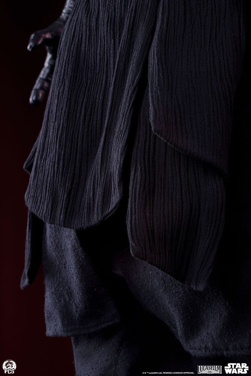 Yaklaşık 81 cm boyunda olan ve çıkarılabilir kapüşonlu bir cübbe ve kemerinde kumaş süslemeler de dahil olmak üzere, güzelce dikilmiş, poz verilebilir kumaş giysilerle övünen bu 1:3 ölçekli heykel, cam gözlü gerçekçi dokulu bir silikon portre ve Lightsaber™'da LED ışıklandırma özelliği de içeriyor. Heykelin yontulmuş unsurları o kadar çok ayrıntıyla dolu ki, karma teknik ile yontulmuş arasındaki boşluğu kusursuz bir şekilde doldurabiliyor. Eldiven ve botlardaki deri benzeri dokular ve ince dikişler, mükemmel boya işçiliğiyle vurgulanıyor.
