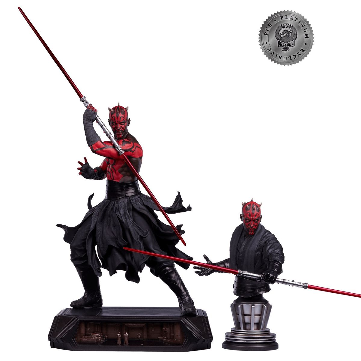 PCS Platinum Özel Sürümü, Darth Maul'un benzersiz işaretlerinin tam olarak sergilendiği, ışın kılıcının savunma pozisyonunda tutulduğu, değiştirilebilir, gömleksiz bir gövde içeriyor. Özel sürüm ayrıca, koleksiyonculara çeşitli sergileme olanakları sunan alternatif gövde için bir sergileme standı ile birlikte geliyor. Platinum Özel Sürümü ayrıca bir heykel temizleme kiti, metal Orijinallik Sertifikası ve gerçek bir 28 gramlık Platinum PCS koleksiyon parası ile 200$ değerinde bir Yakut Bileti kazanma şansı içeriyor.