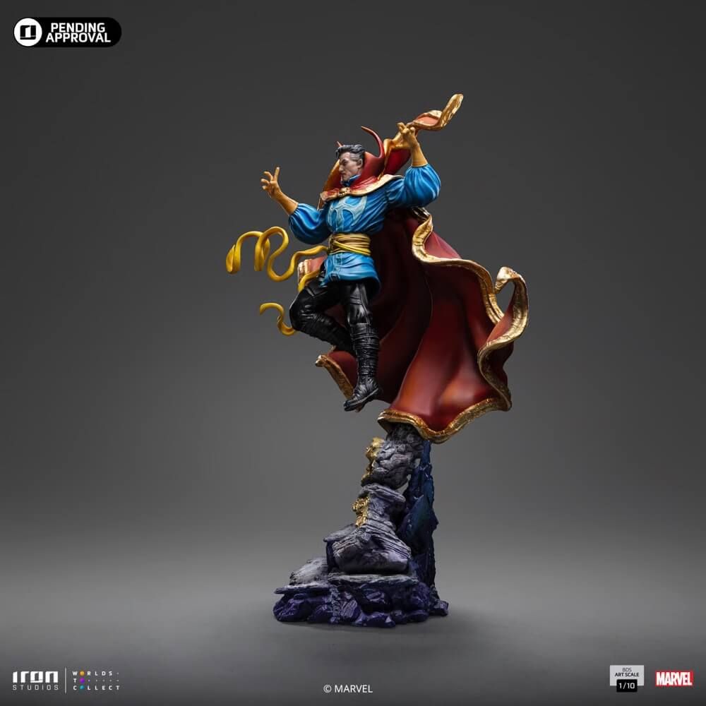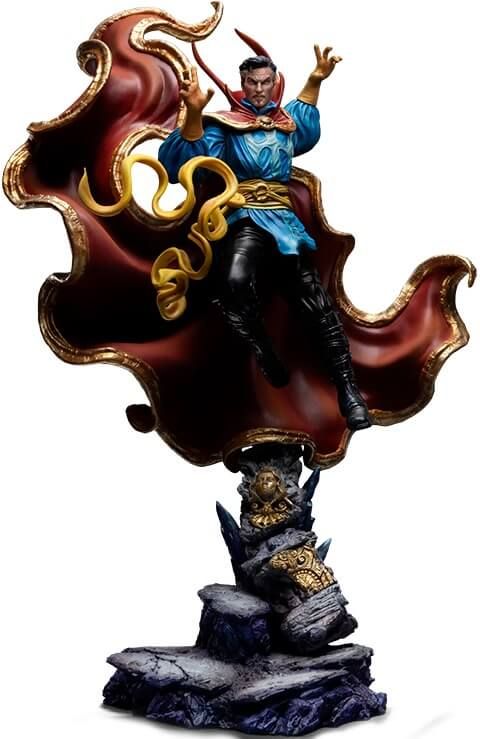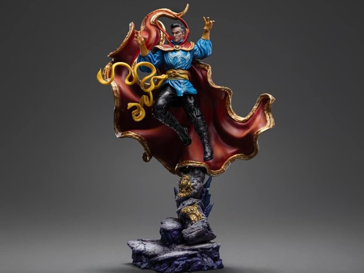 Dünyanın Yüce Büyücüsü, mistik sanatlardaki engin ustalığıyla, Agamotto, Hoggoth ve Oshtur'dan oluşan Vishanti üçlüsü olarak bilinen koruyucuları tarafından desteklenerek, insan kavrayışının ötesindeki enerjileri manipüle eder. Korkusuz büyücü, uzayın ötesindeki kurak bir savaş alanının kaidesinin üzerinde, Levitation Pelerini adı verilen büyülü pelerininin güçleriyle süzülür. Sert bir yüz ifadesi ve keskin bakışlarıyla büyücü, göğsünde Agamotto'nun Gözü adı verilen güçlü bir eser taşır. Iron Studios, Marvel evreninden mistik sanatların ustasının klasik versiyonunu, Dünya'nın en güçlü kahramanlarının çılgın Titan Thanos ve Sonsuzluk Eldiveni tehdidiyle karşı karşıya kaldığı çizgi romanlardan esinlenerek "Dr. Strange - Thanos x Avengers Comics - BDS Art Scale 1/10" heykeliyle sunuyor. Iron Studios ayrıca, Titan'dan gelen çılgın hayranı tarafından Ölüm varlığına ithafen yaratılan akıl almaz bir tapınağın kalıntıları ve sivri kayaların üzerinde Yüce Büyücü'yü sergileyen "Dr. Strange Deluxe - Thanos x Avengers Comics - BDS Art Scale 1/10" heykelini de sunacak. Bu versiyon, mistik efektlere sahip ekstra değiştirilebilir bir çift el ile birlikte geliyor.
