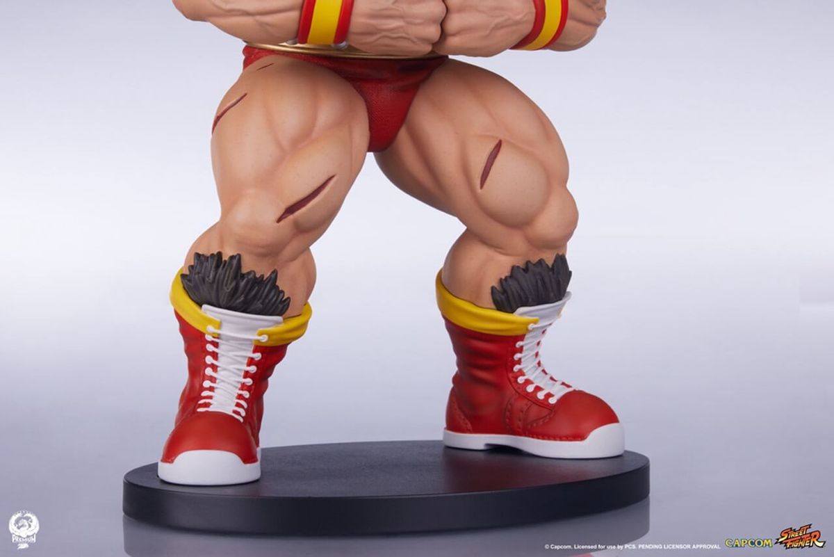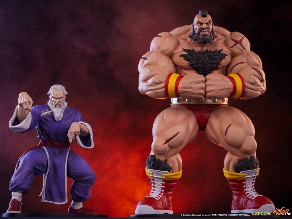 Bu setteki her iki figür de tamamen heykeldir ve her biri, kişiliklerini yansıtan bir pozda tasvir edilmiştir. Zangief, etkileyici fiziğinin her bir zerresini sergileme çabasıyla yüzünü buruşturmuş, devasa kaslarını esnetiyor. Gen, arka ayağını sıkıca yere basan ve elleri vuruşa hazır bir şekilde, bir dövüş sanatları duruşunda duruyor. Geleneksel kıyafetinin ve buruşuk portresinin her bir unsuru burada inanılmaz ayrıntılarla yeniden yaratılmış.
