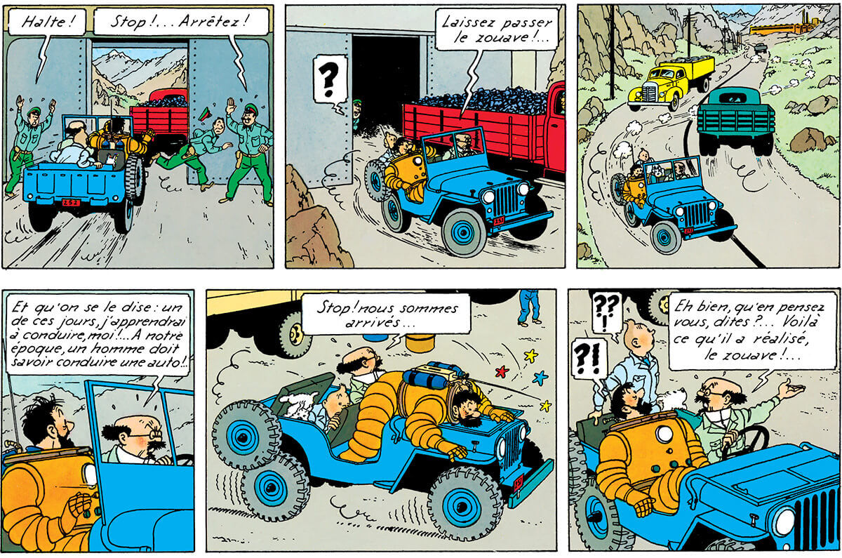 Ve sürüşü heyecan verici! Her şeyin üstüne, Profesör Calculus yarışın sonunda ehliyetinin olmadığını itiraf ediyor: "Bir gün öğreneceğim!" Frenlere aniden basmadan önce yolcularına övünerek şöyle diyor:
