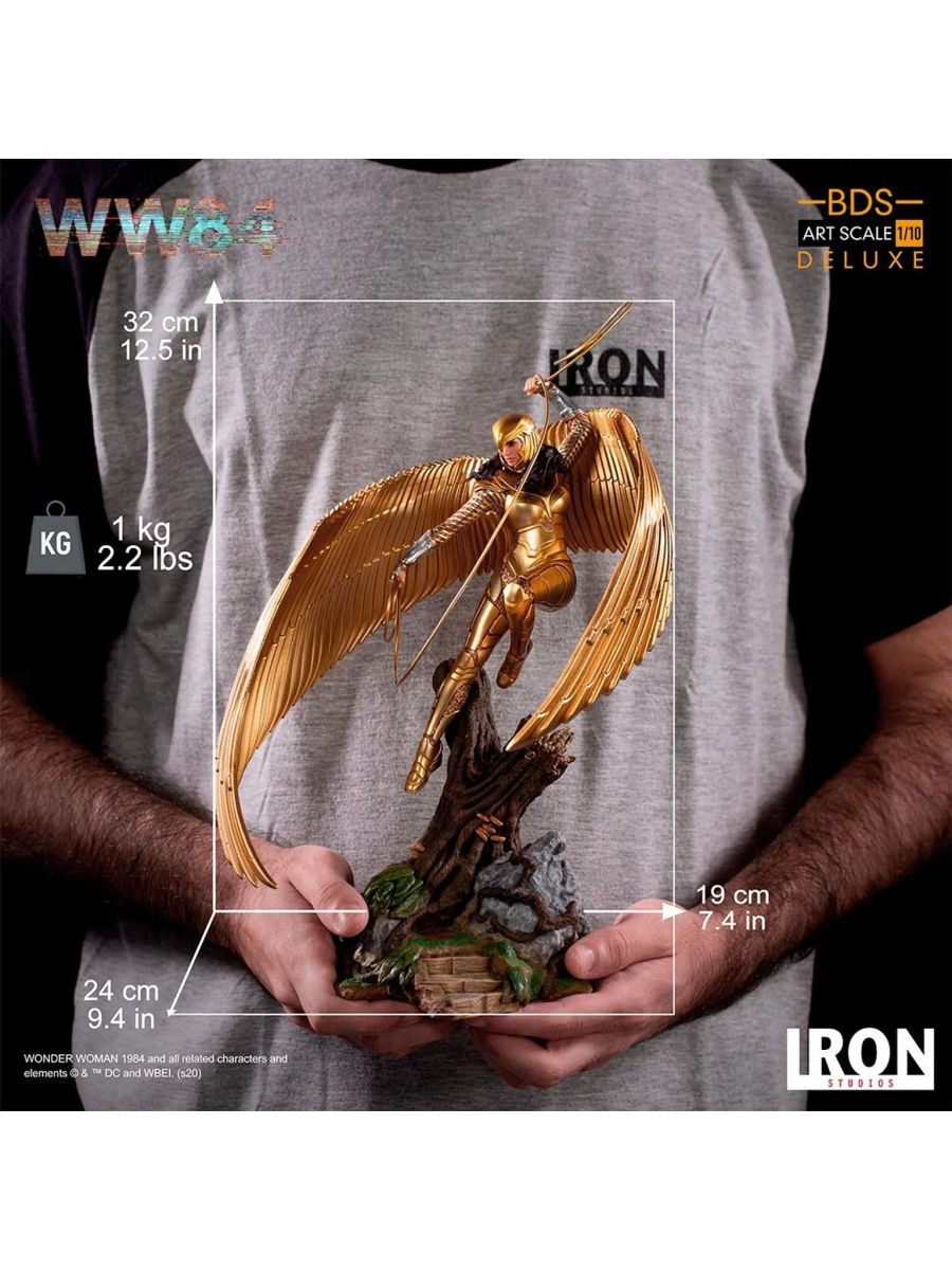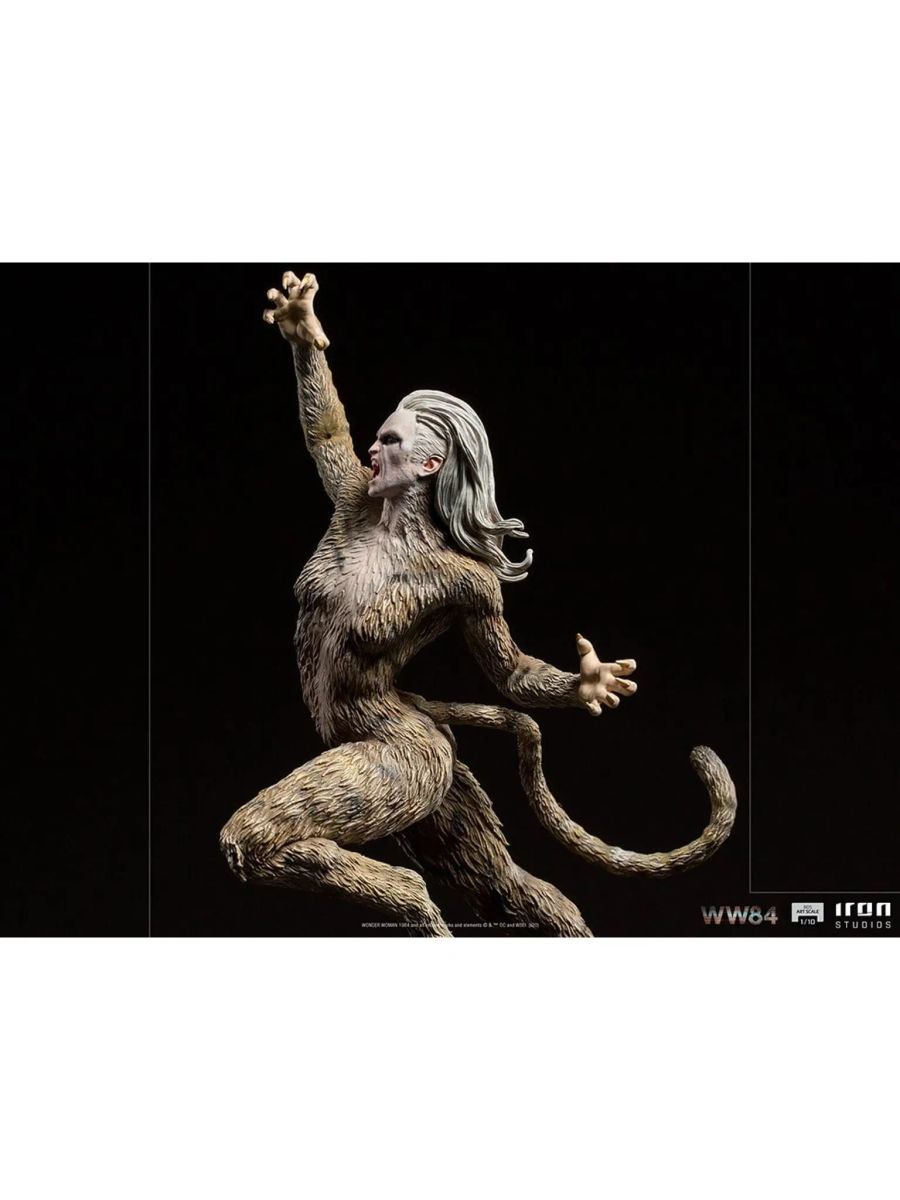 Keskin pençeleriyle vahşi kedi kötü adam, güçlü Amazon rakibine saldırmak için insanüstü hızıyla sıçrıyor. Bu senaryoyla Iron Studios, ikonik kötü adamın film versiyonundan esinlenen ve WW84 filminde Wonder Woman'ın düşmanı olan ve oyuncu Kristen Wiig tarafından canlandırılan Çita BDS Sanat Ölçeği 1:10 – WW84 heykelini gururla sunar.