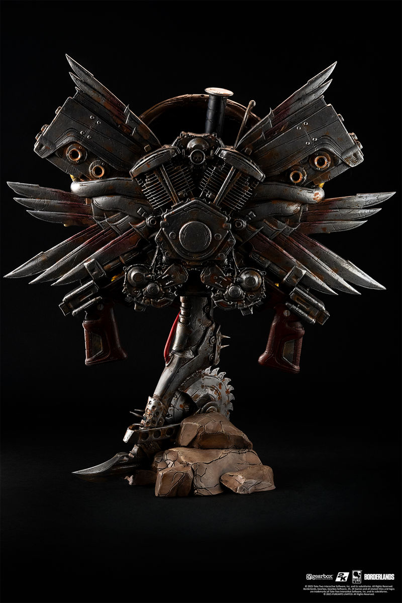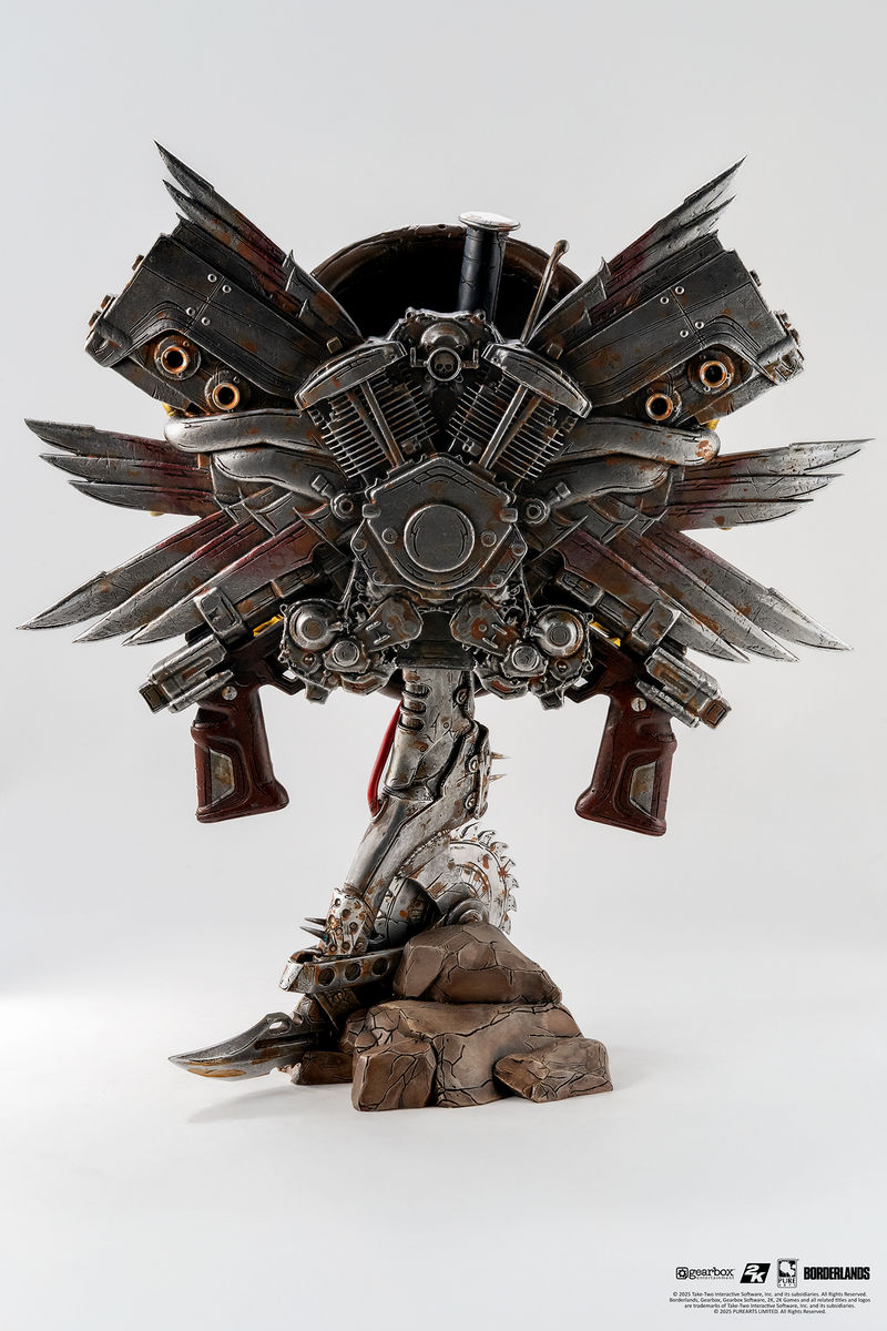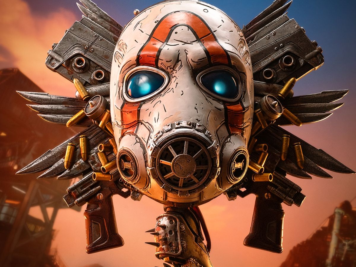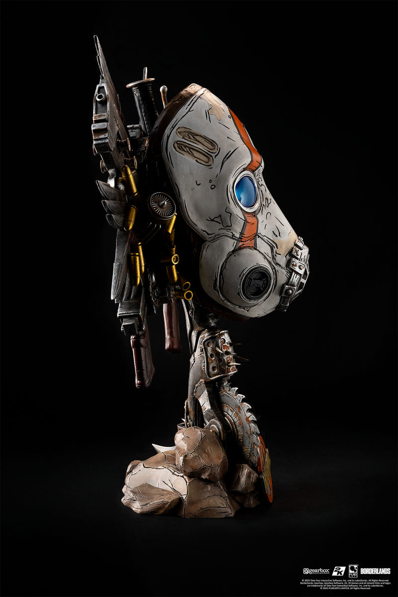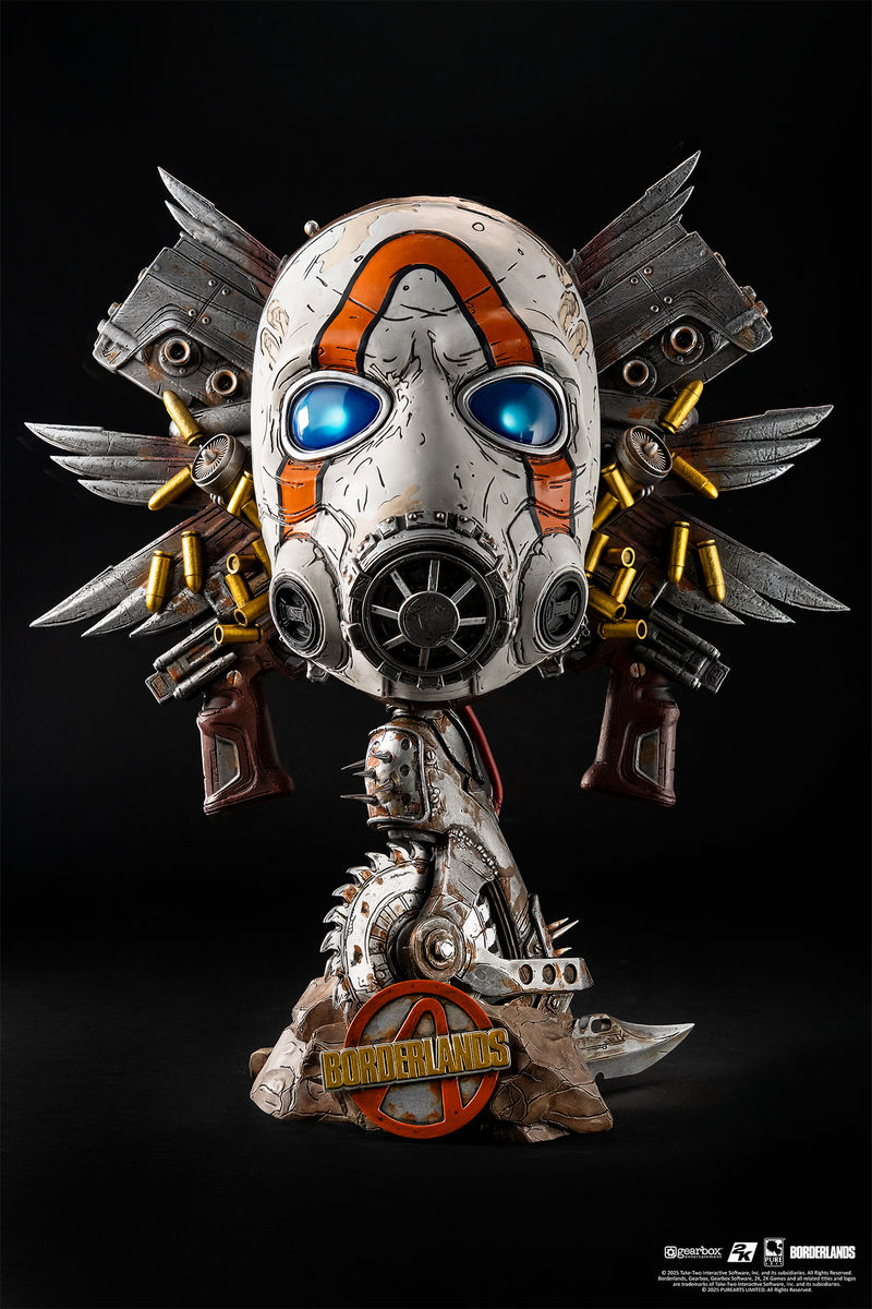 Borderlands Psycho Bandit Sanat Maskesi ile Pandora dünyasını evinize getirin! Parlayan LED ışıklı gözler, serbestçe dönen paslı bir Buzz Axe tabanı ve kaotik silah, mühimmat ve motor patlamasıyla, bu 1:1 ölçekli sanat maskesi kargaşaya adanmış bir türbedir.